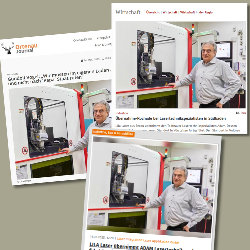 Die Übernahme der ADAM Lasertechnik GmbH durch die Laser Integration Laser Applikation GmbH (LILA) für viel Aufmerksamkeit gesorgt. Zahlreiche Medien berichteten über den Zusammenschluss zweier starker Partner in der Lasertechnik.