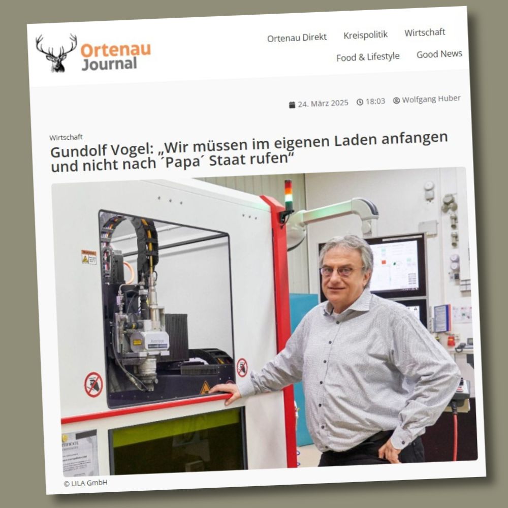 Anlässlich der Integration der ADAM Lasertechnik in die LILA GmbH führte das Internetportal ORTENAU JOURNAL ein ausführliches Gespräch mit LILA-Geschäftsführer Gundolf Vogel.
